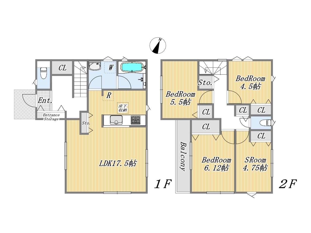 | 間取 | 3SLDK (LDK17.5帖、洋室6.12帖、洋室5.5帖、洋室4.5帖、S4.75帖) | ||