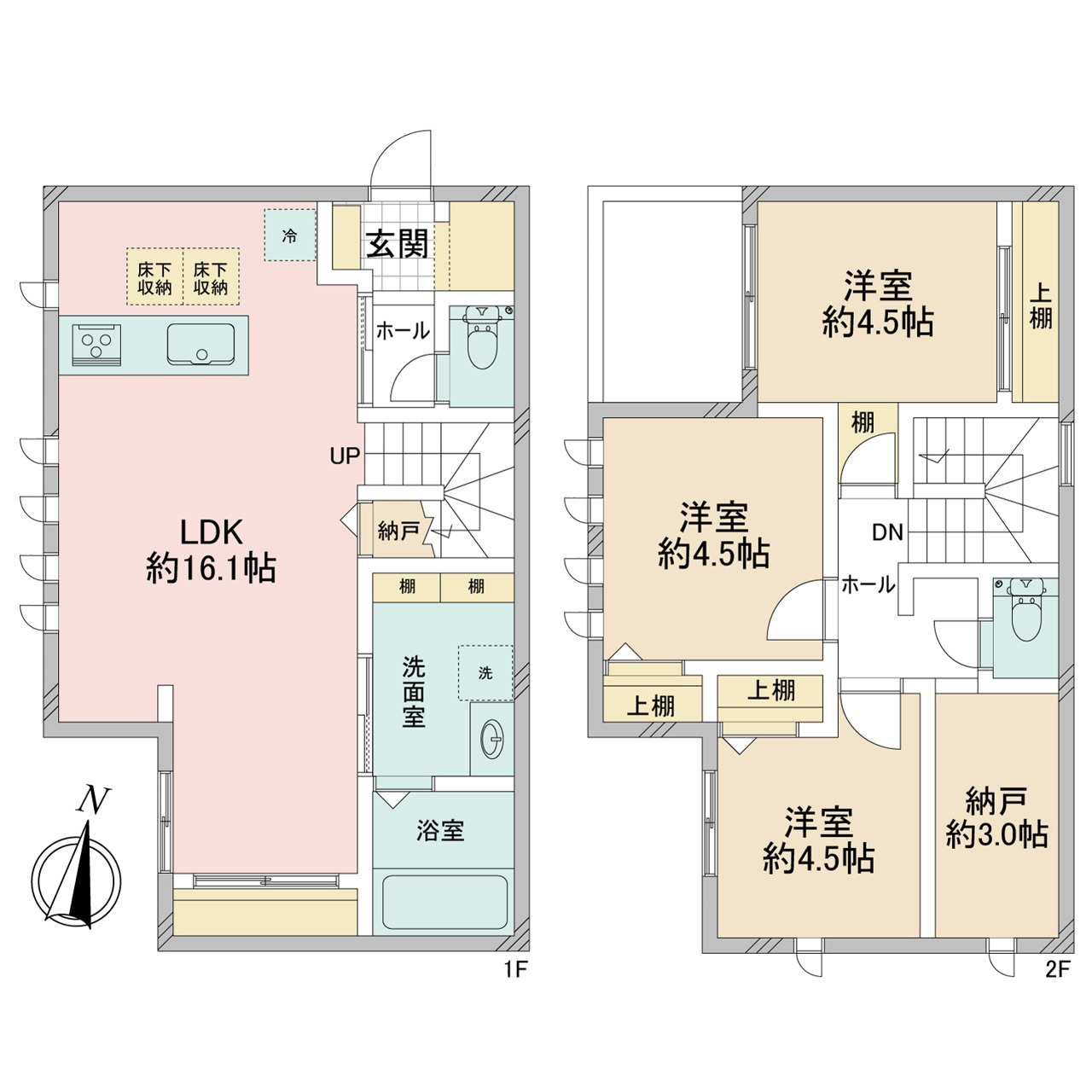 | 間取 | 3SLDK (LDK16.1帖、S3帖、洋室4.5帖、洋室4.5帖、洋室4.5帖) | ||