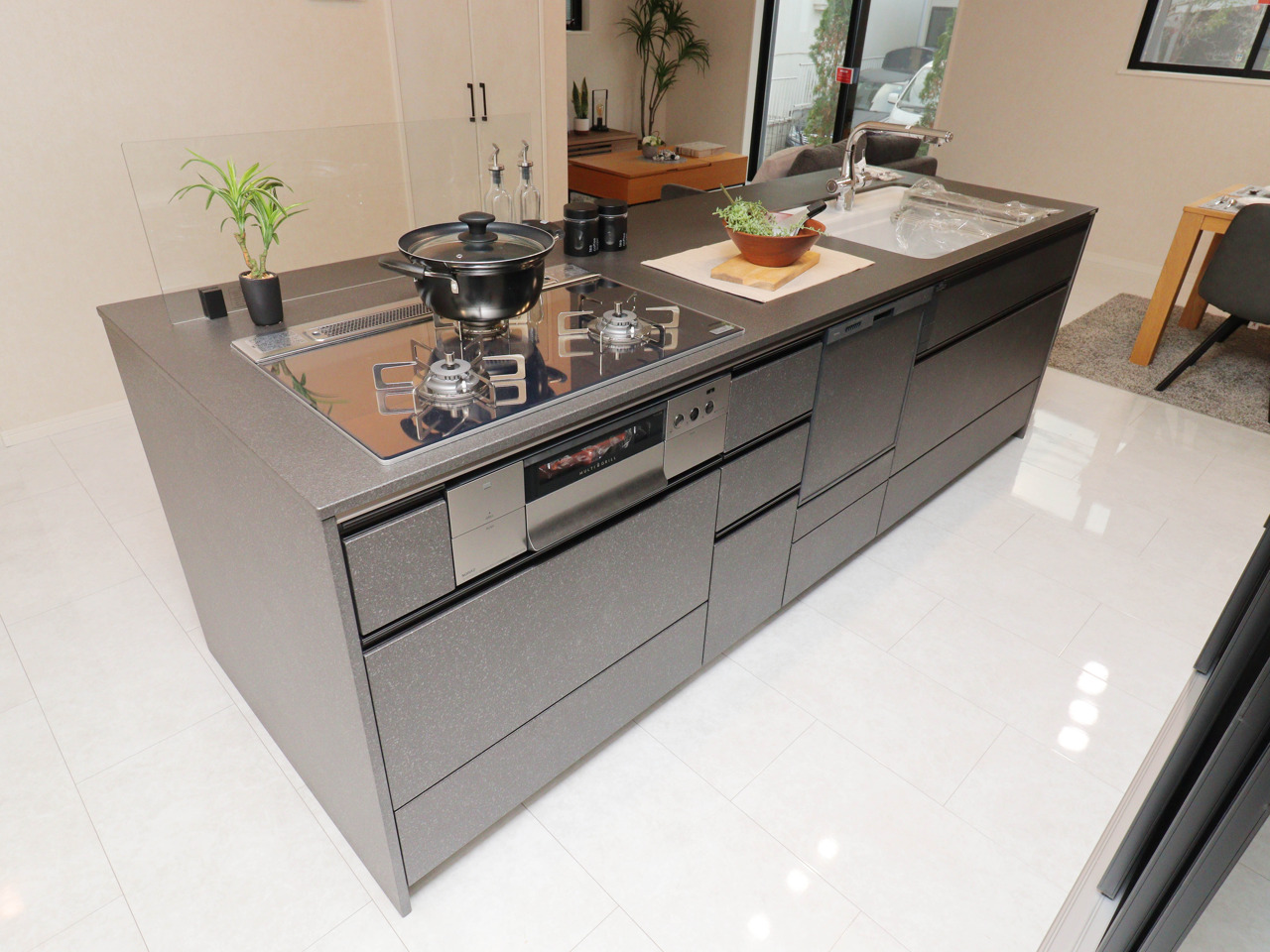 POINT3. 床暖房搭載LDKは18.1帖と家具を置いてもゆとりある広さ!リビング階段と食洗機付きアイランドキッチンによって高いデザイン性を保ちつつも家族間の絆が深まりやすい造りとなっています!