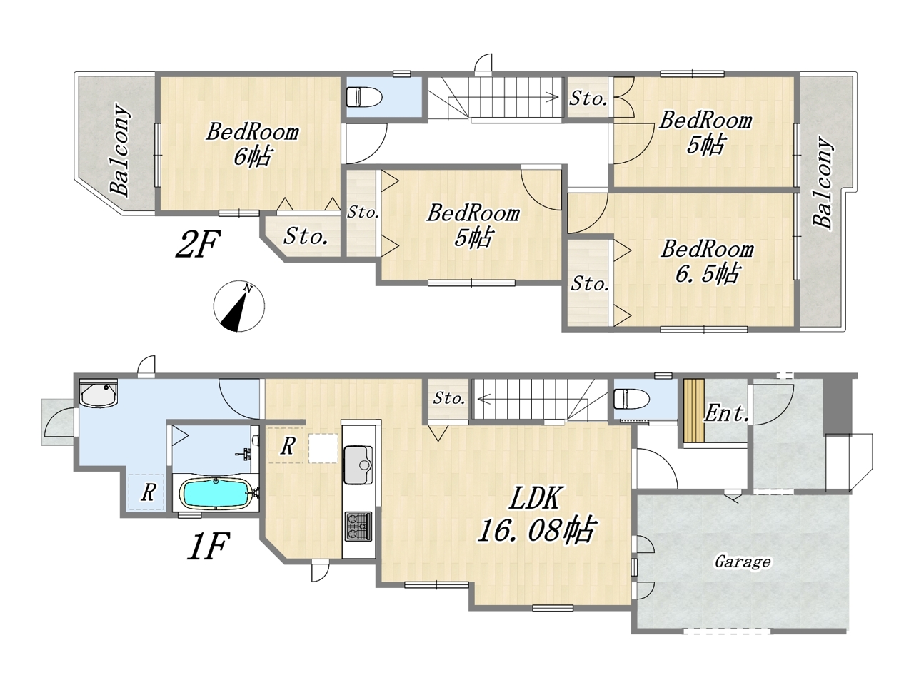 | 間取 | 4LDK (LDK16.08帖、洋室6.5帖、洋室6帖、洋室5帖、洋室5帖) | ||