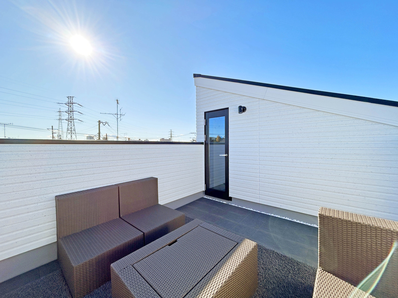 POINT1. 全棟開放的な屋上テラス・カースペース付き!ワンランク上の優雅な暮らしを堪能できます。