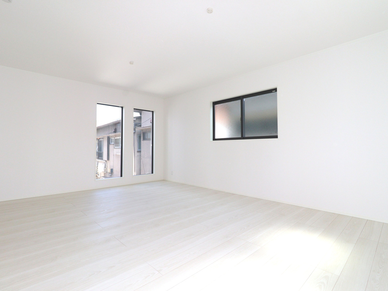 POINT2. 家族全員自分だけの空間が叶う4部屋プラン!広々とした18.14帖のLDKは三面採光で開放感抜群、2階に設置されているので人目を気にせずくつろげます!