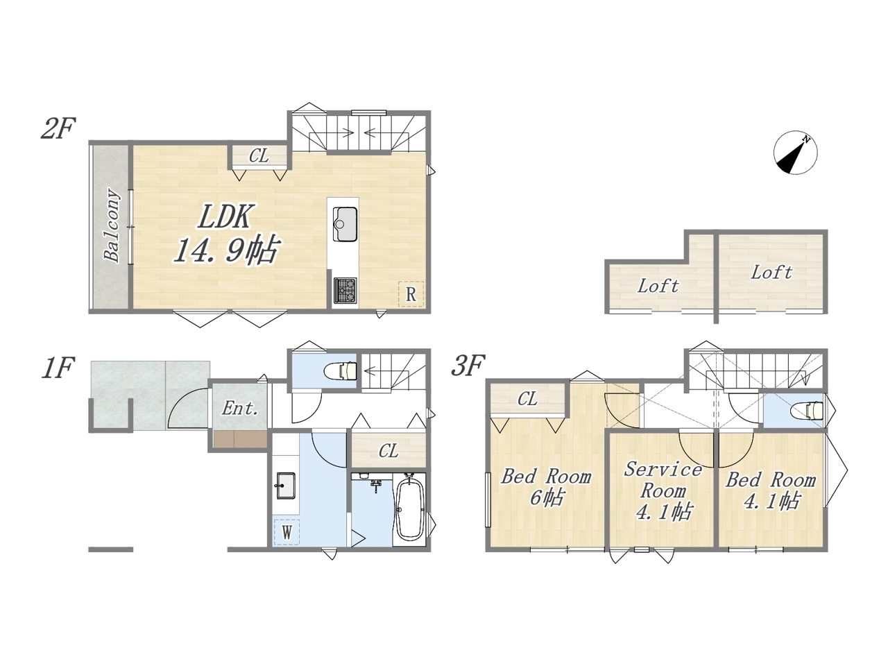 2SLDKにロフト収納が2か所備わっている収納豊富なプランニング。