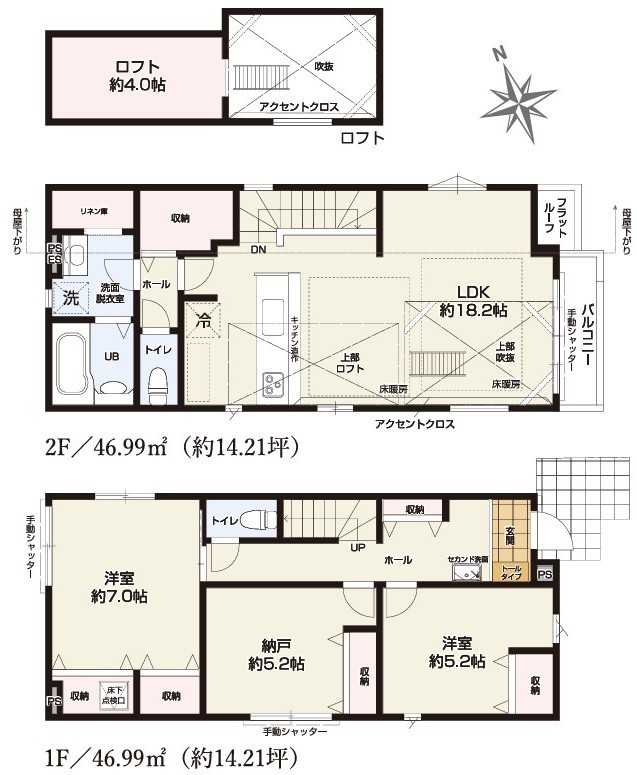 | 間取 | 2SLDK+Loft+カースペース2台 (SLDK23.4帖、洋室7.0帖、洋室5.2帖) | ||