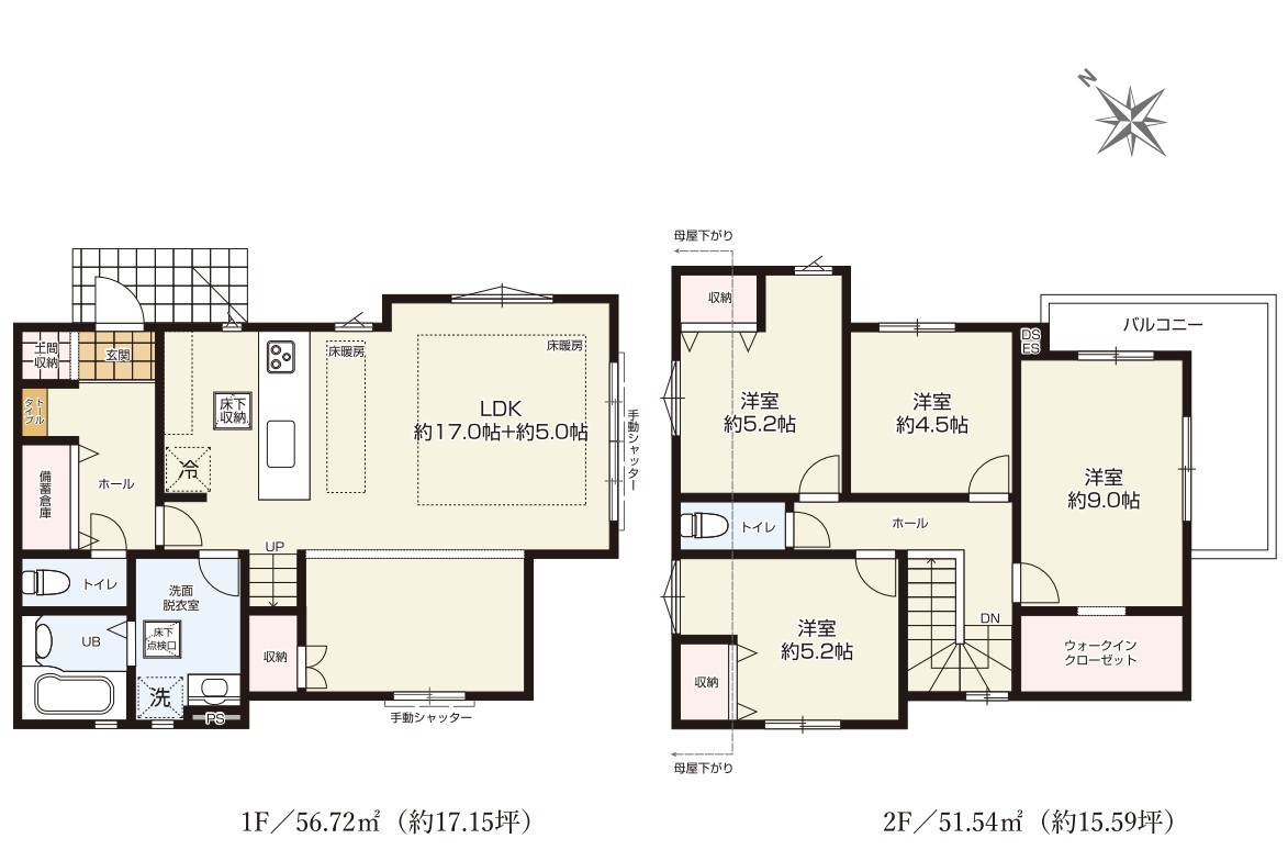 | 間取 | 4LDK+WIC+SIC+カースペース2台 (LDK22.0帖、洋室9.0帖、洋室5.2帖、洋室5.2帖、洋室4.5帖) | ||