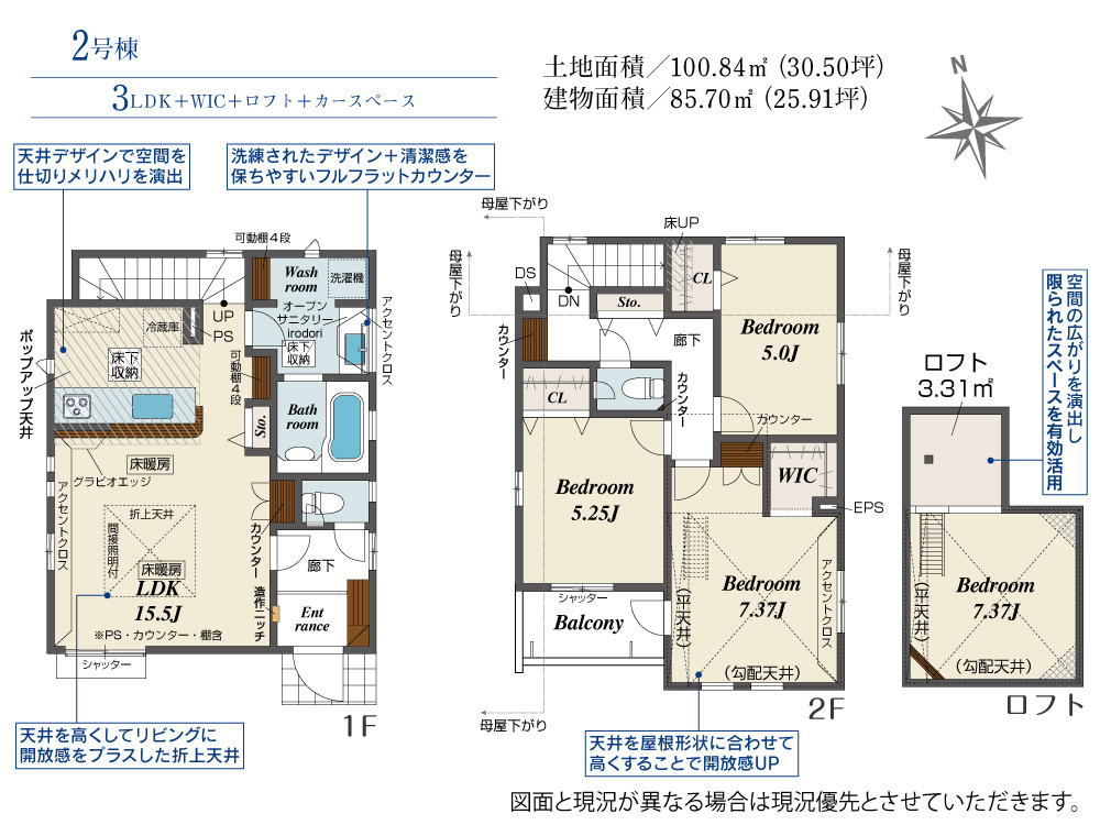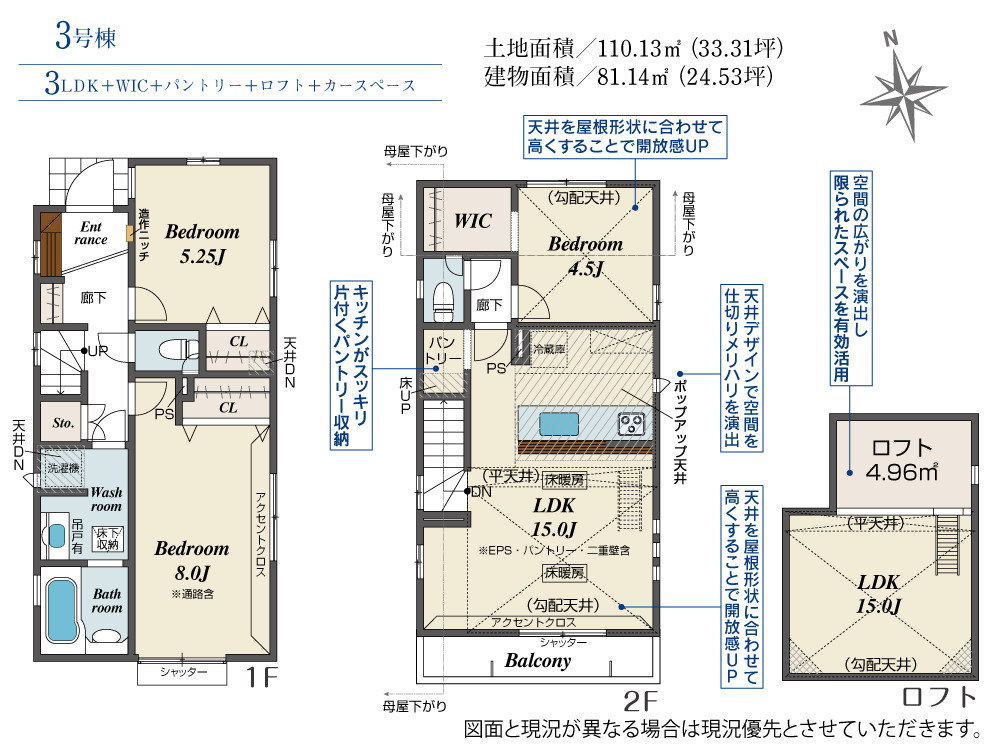 | 間取 | 3LDK~3LDK+WIC+Loft+カースペース | ||