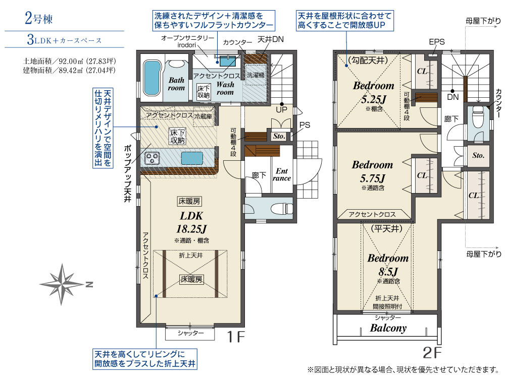 | 建物面積 | 89.42m² ~ 99.57m² 実測 | ||