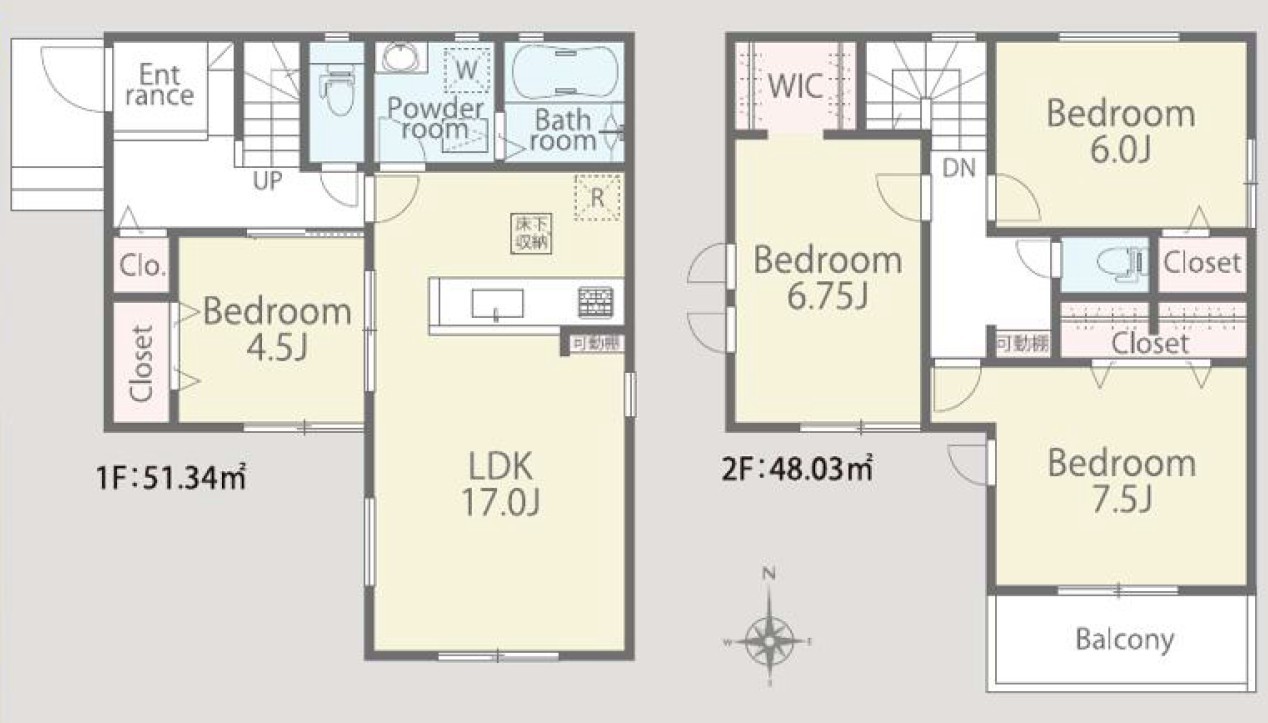 | 間取 | 4LDK+WIC+カースペース2台 (LDK17帖、洋室7.5帖、洋室6.75帖、洋室6帖、洋室4.5帖) | ||