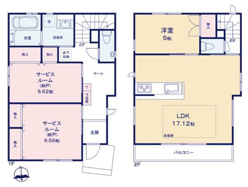 | 間取 | 1SLDK+2S+カースペース (LDK17.12帖、洋室5帖、S6.56帖、S5.62帖) | ||