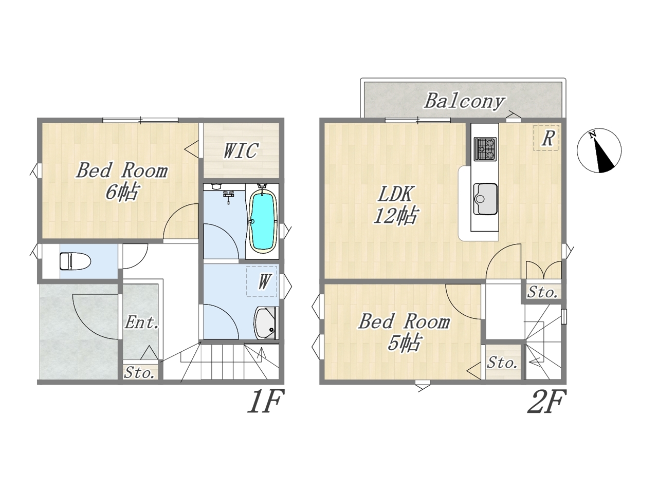 | 間取 | 2LDK + WIC+カースペース (LDK12帖、洋室6帖、洋室5帖) | ||