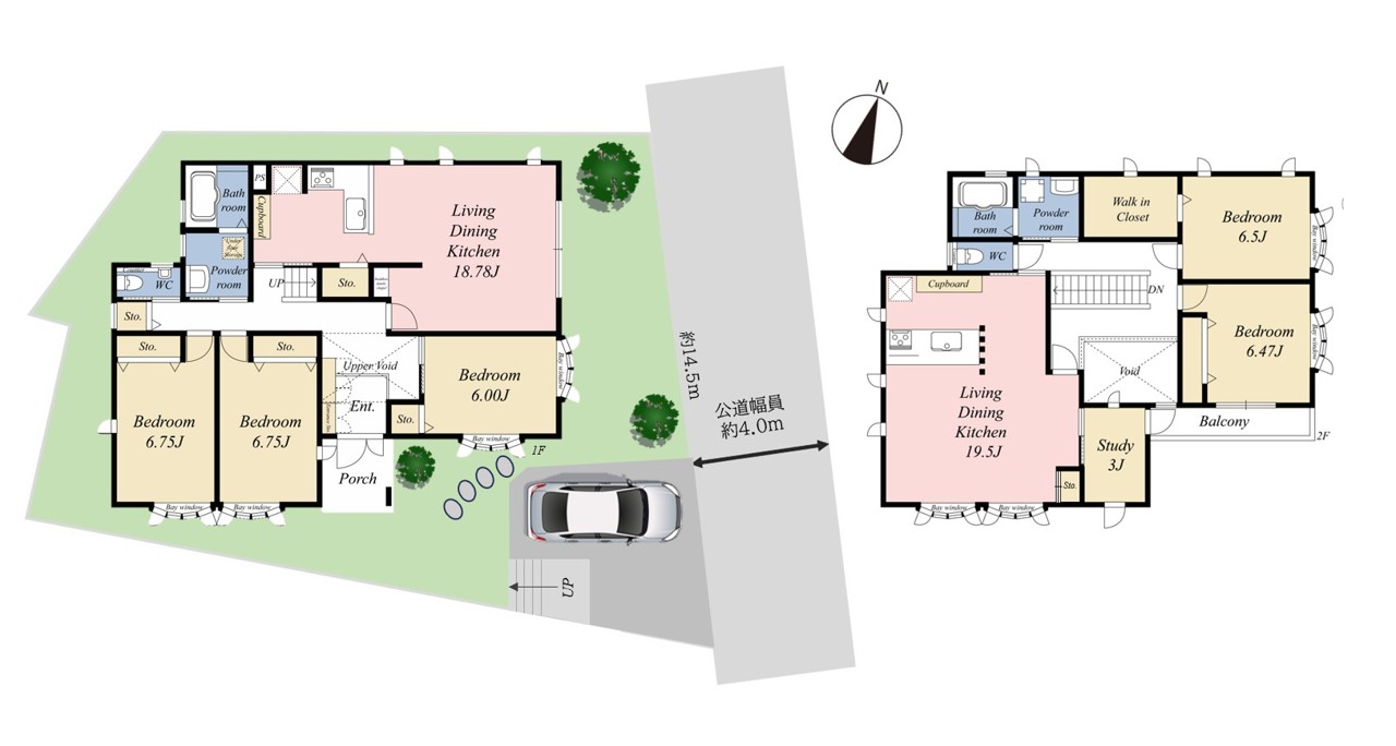| 間取 | 5SLDK+LDK+WIC+Pantry+カースペース (LDK19.5帖、LDK18.78帖、洋室6.75帖、洋室6.75帖、洋室6.5帖、洋室6.47帖、洋室6.00帖、S3帖) | ||