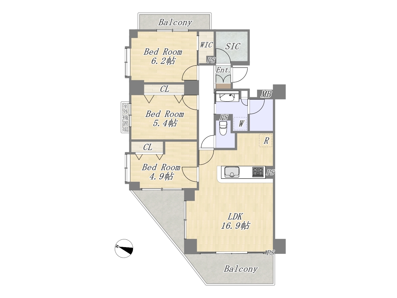 | 間取 | 3LDK (LDK16.9帖、洋室6.2帖、洋室5.4帖、洋室4.9帖) | ||
