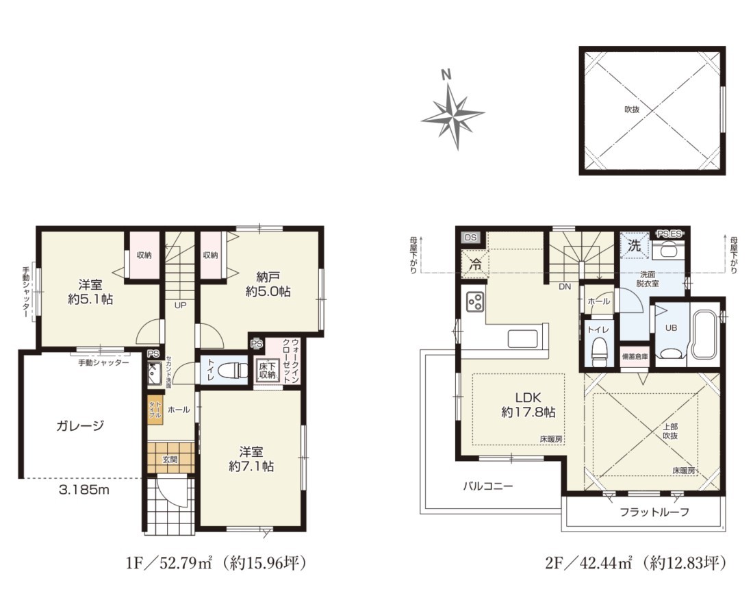| 間取 | 2SLDK+WIC+カースペース (LDK17.8帖、洋室7.1帖、洋室5.1帖、S5.0帖) | ||