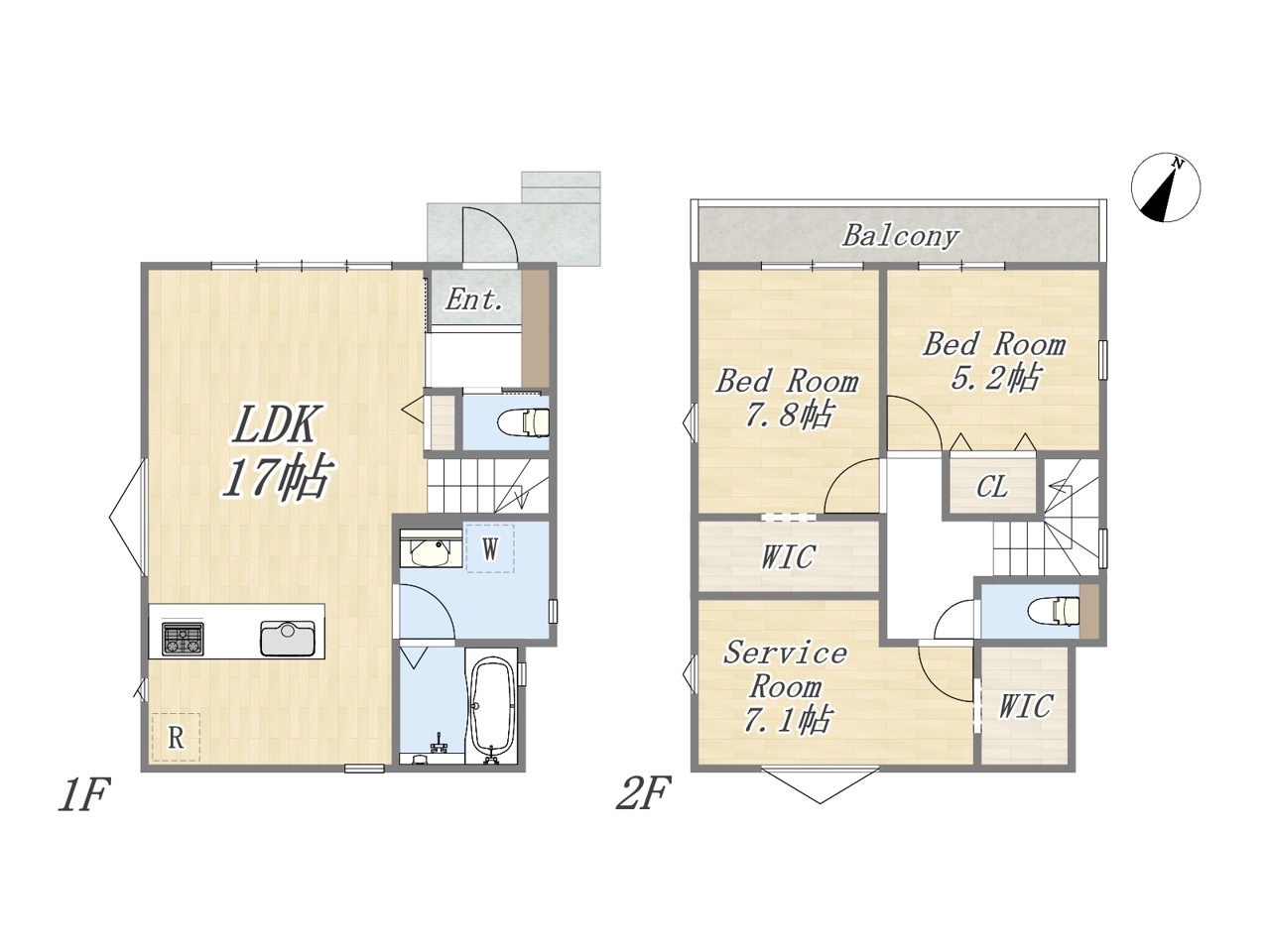 | 間取 | 2SLDK+2WIC+カースペース2台 (LDK17帖、洋室7.8帖、洋室5.2帖、S7.1帖) | ||