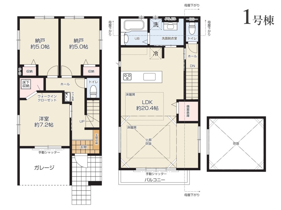 ◆ LDK20帖超えの1LDK+2S+Pantry+カースペースの間取りプラン!