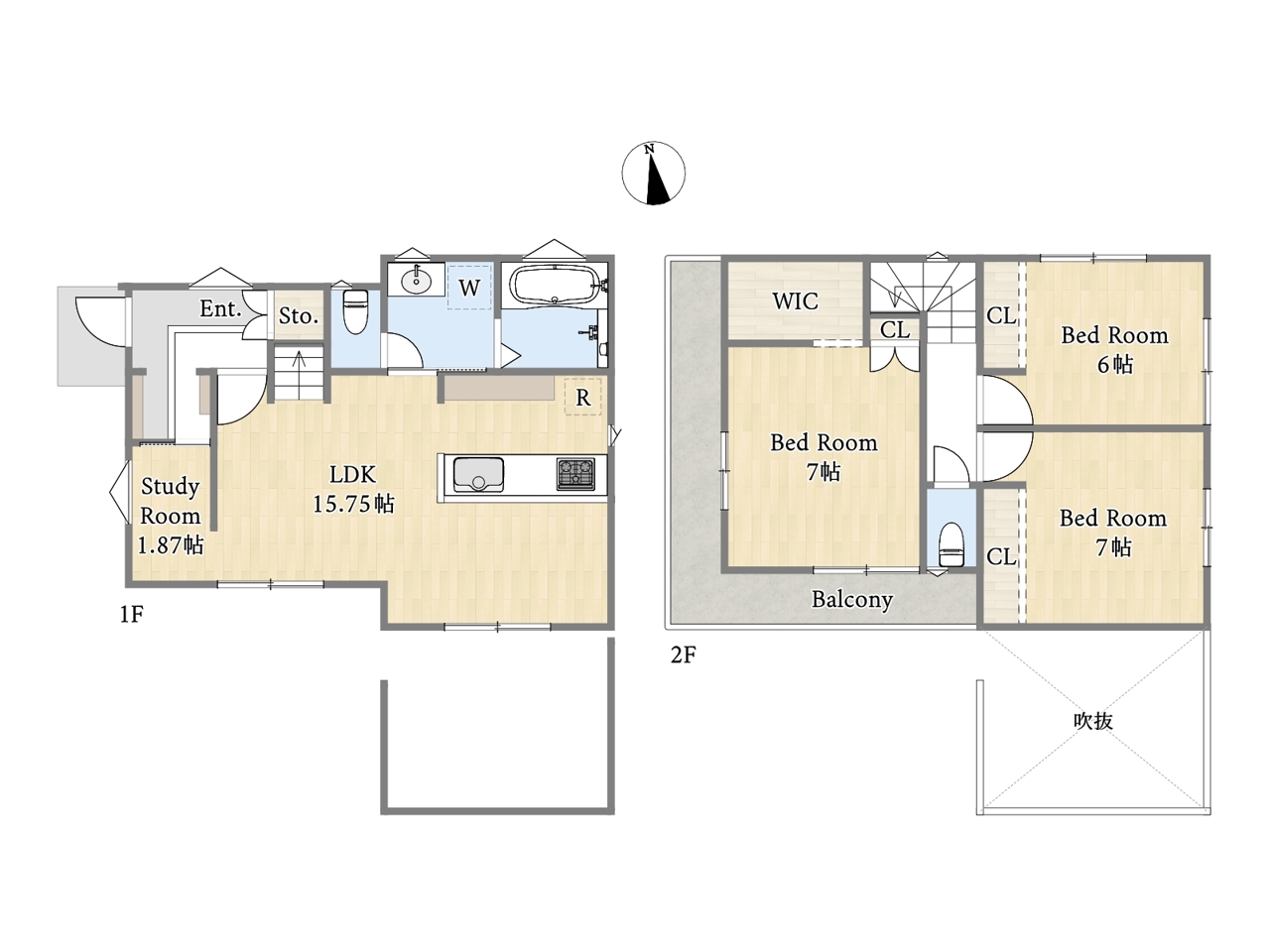 | 間取 | 3LDK+WIC+SIC+カースペース2台 (LDK15.75帖、洋室7帖、洋室7帖、洋室6帖) | ||