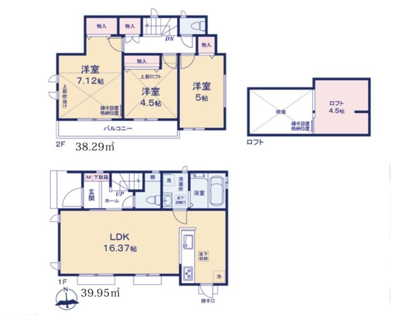 ◆ 各棟LDK15帖超えの3LDK+Loft+カースペースの間取りプラン!