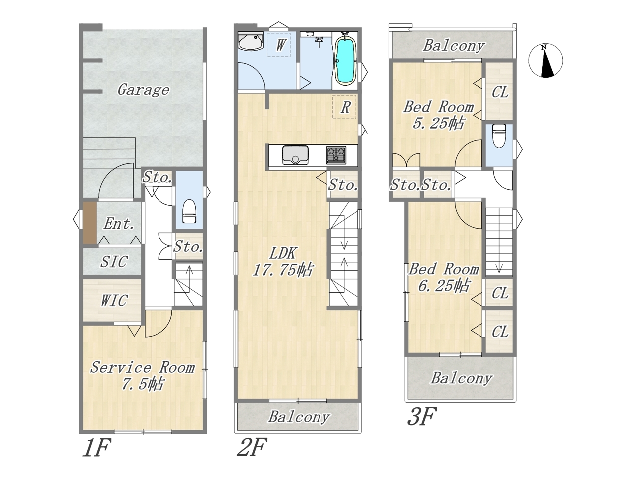 | 間取 | 2SLDK + WIC+SIC (LDK17.75帖、洋室6.25帖、洋室5.25帖、S7.5帖) | ||
