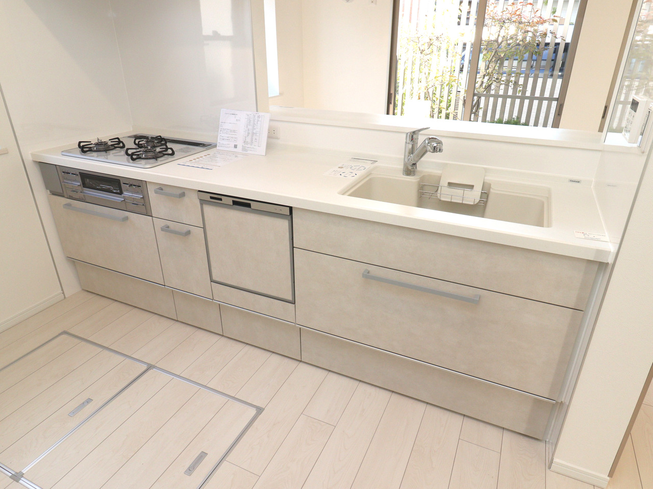 【Kitchen】 上質な素材感と洗練されたデザインが、毎日の暮らしに心地よいリズムをもたらします。窓の外には穏やかな自然の気配が感じられ、清潔感あふれる空間が広がります。