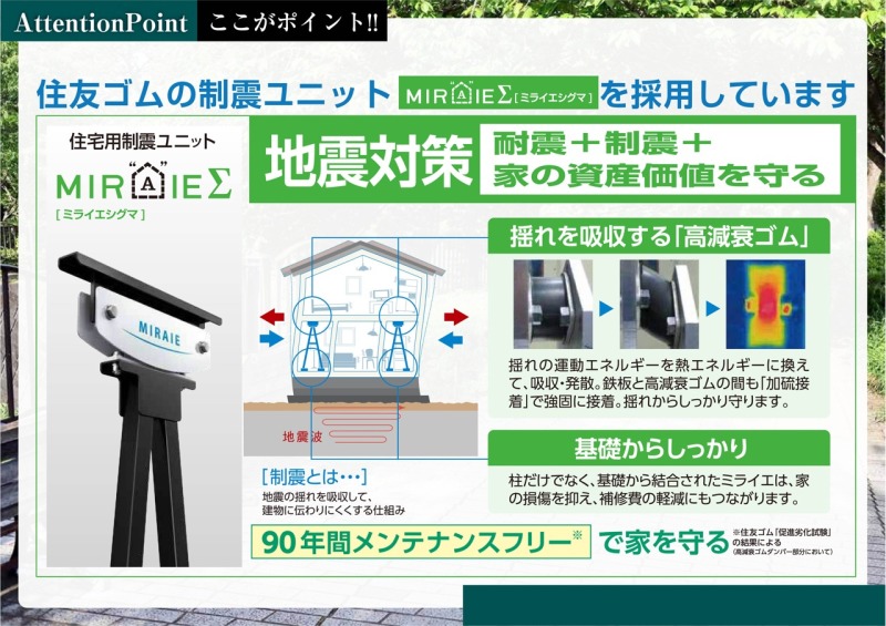 POINT4. 住宅用制震ユニット「ミライエΣ」が搭載された揺れに強く安心して暮らせる物件!