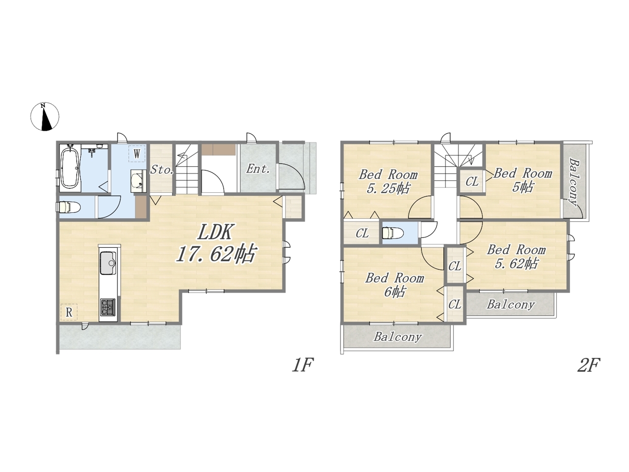 | 間取 | 4LDK+カースペース (LDK17.62帖、洋室6帖、洋室5.62帖、洋室5.25帖、洋室5帖) | ||