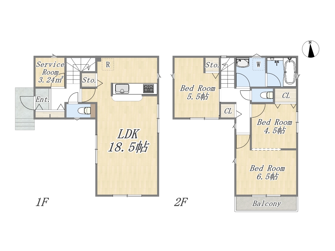 | 間取 | 3SLDK+Pantry+カースペース (LDK18.5帖、洋室6.5帖、洋室5.5帖、洋室4.5帖、S3.24帖) | ||
