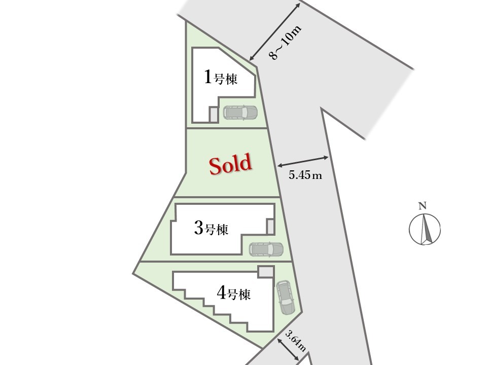 | 接道 | 北東側8M道路に接道 東側5.45M道路に接道 南東側3.64M道路に接道 |