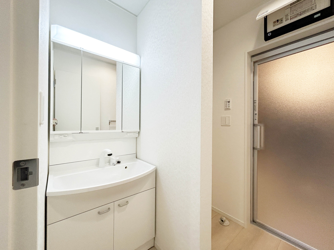 【Kitchen】 清潔感のあるシステムキッチン。木目の床と柔らかな色調の建具が、温かみと調和をもたらし、日々の穏やかな時間を優しく彩ります。