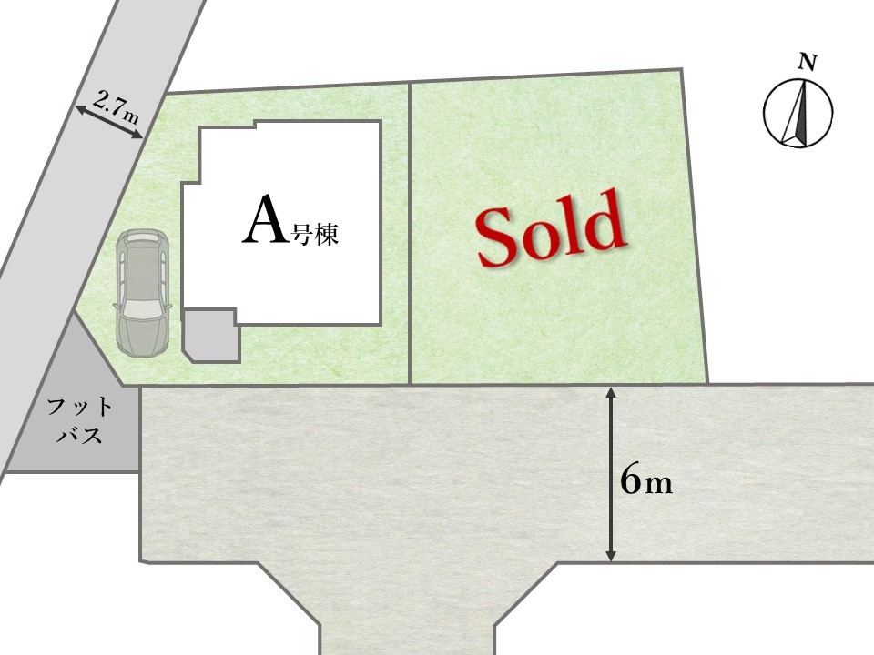 | 接道 | 西側6M道路に接道 東側2.7M道路に接道 |