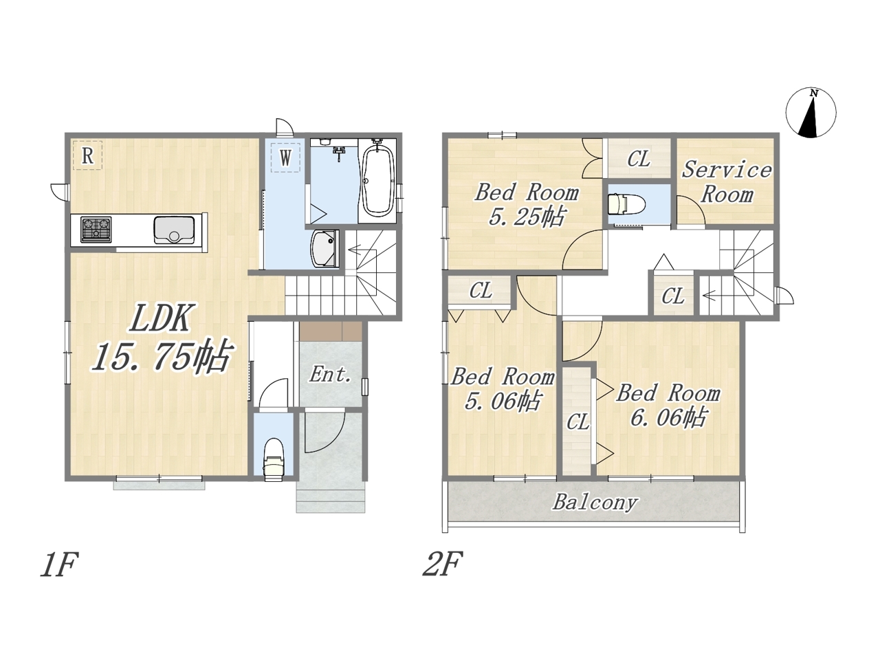 全棟LDK15.75帖以上の3部屋ファミリープラン。