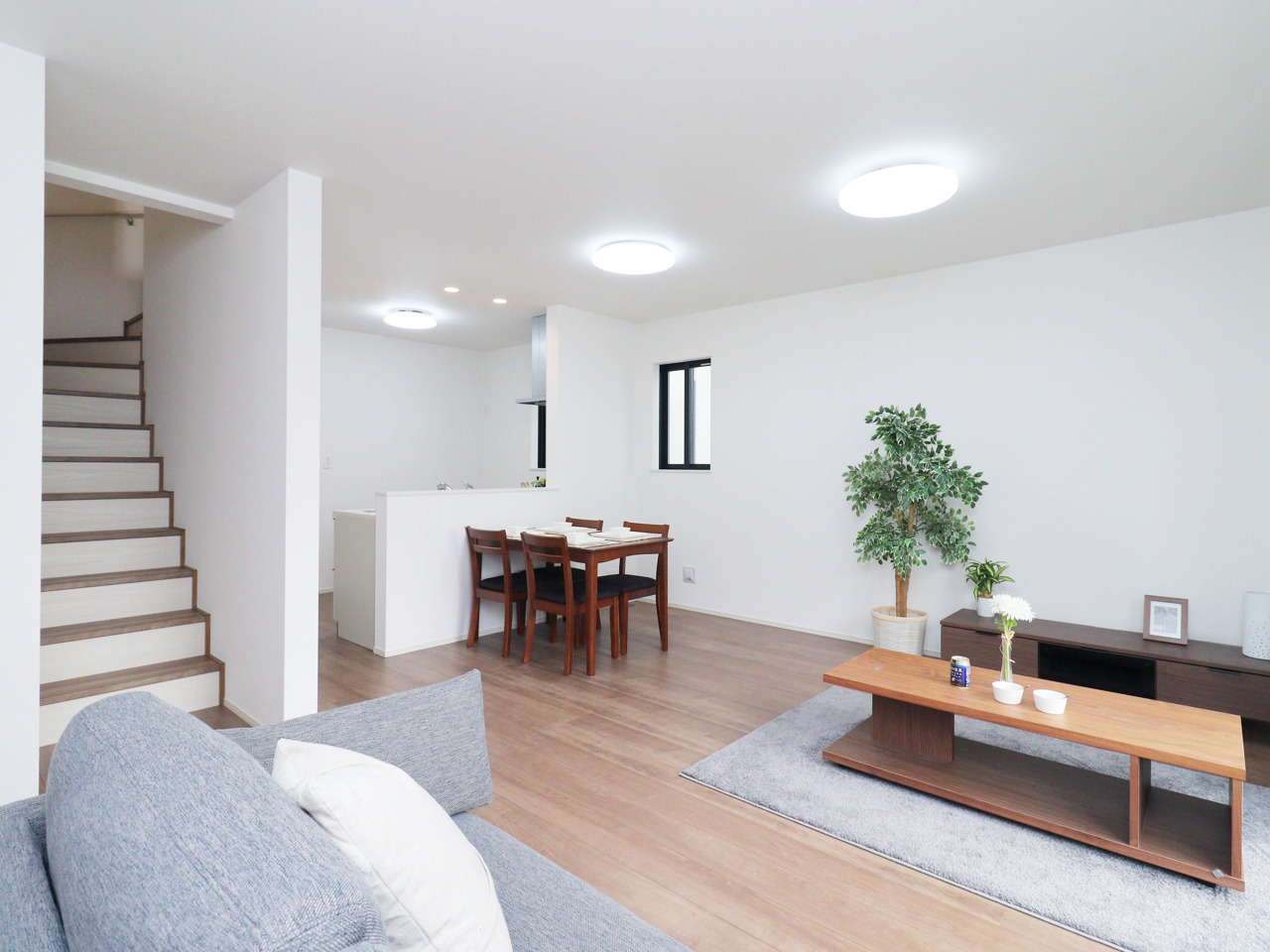 POINT2. 全棟LDK15.75帖以上!家族間のコミュニケーションが増えるリビング階段とカウンターキッチンで会話が絶えない賑やかな家庭が叶います。