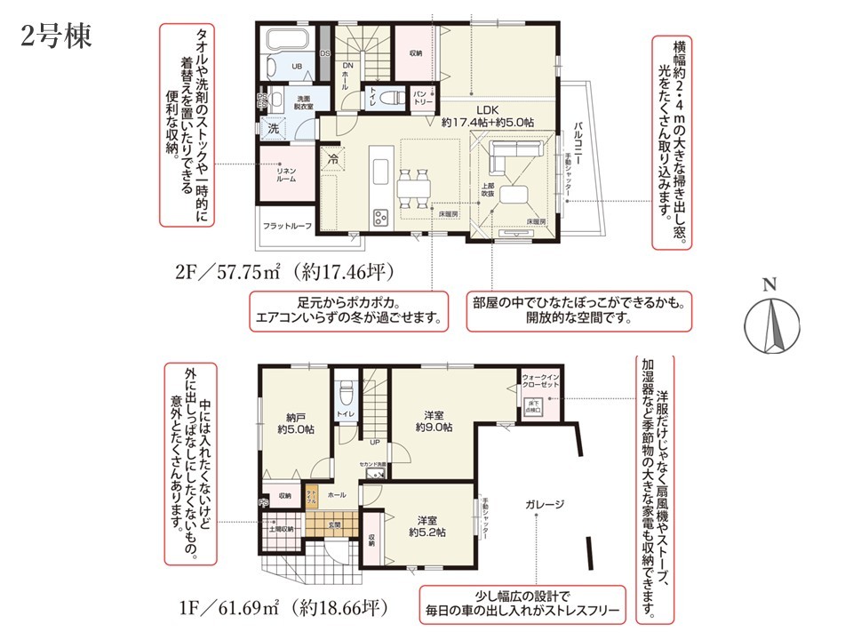 | 建物面積 | 119.44m² ~ 131.62m² 実測 | ||