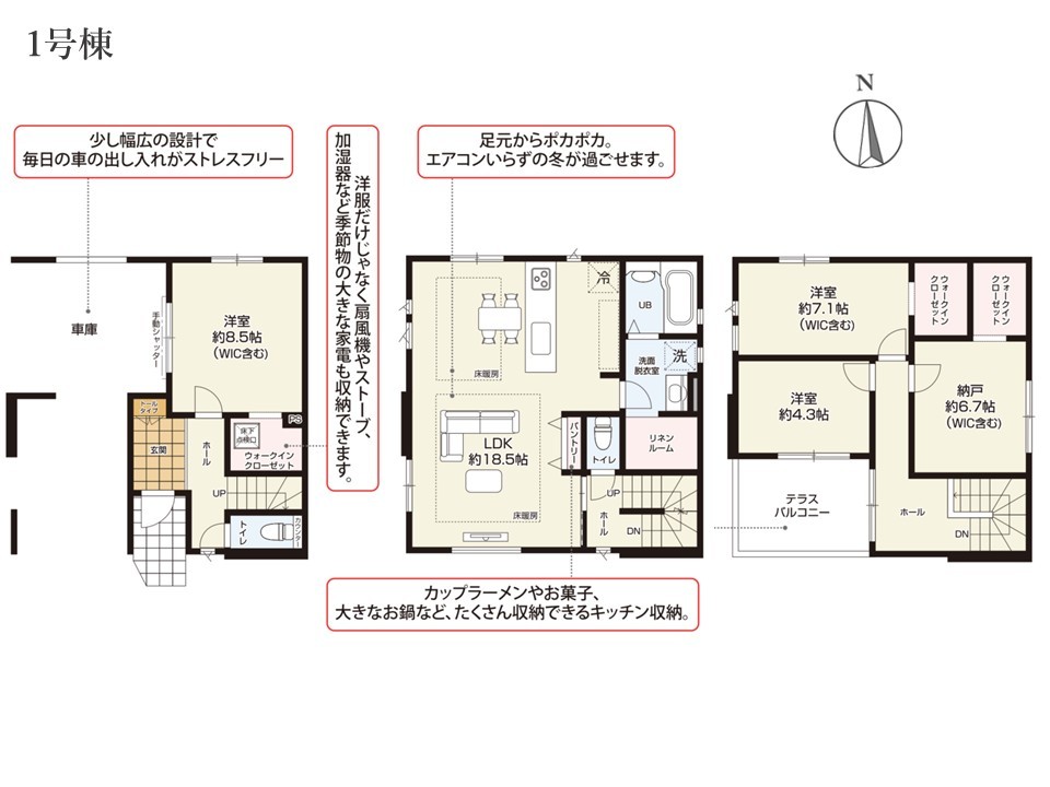 | 間取 | 2SLDK~3SLDK+WIC+Pantry+カースペース | ||