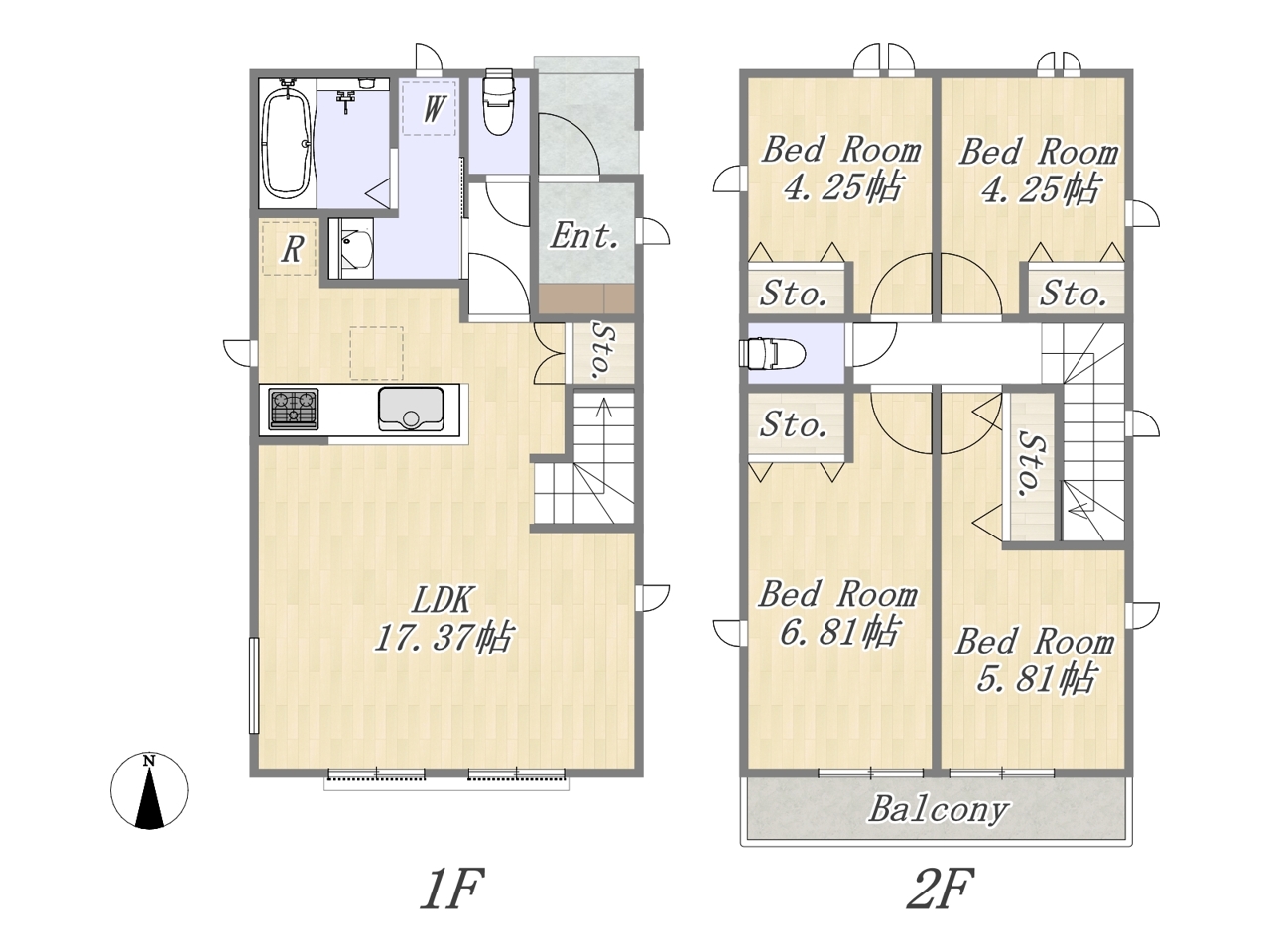 | 間取 | 4LDK+Pantry+カースペース2台 (LDK17.37帖、洋室6.81帖、洋室5.81帖、洋室4.25帖、洋室4.25帖) | ||