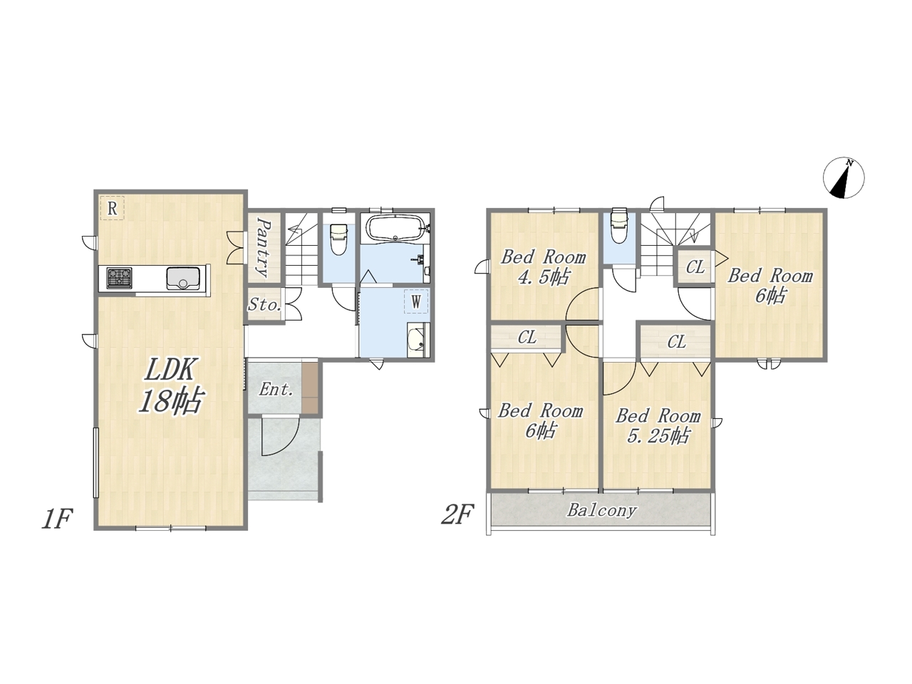 | 間取 | 4LDK+Pantry+カースペース (LDK18帖、洋室6帖、洋室6帖、洋室5.25帖、洋室4.5帖) | ||