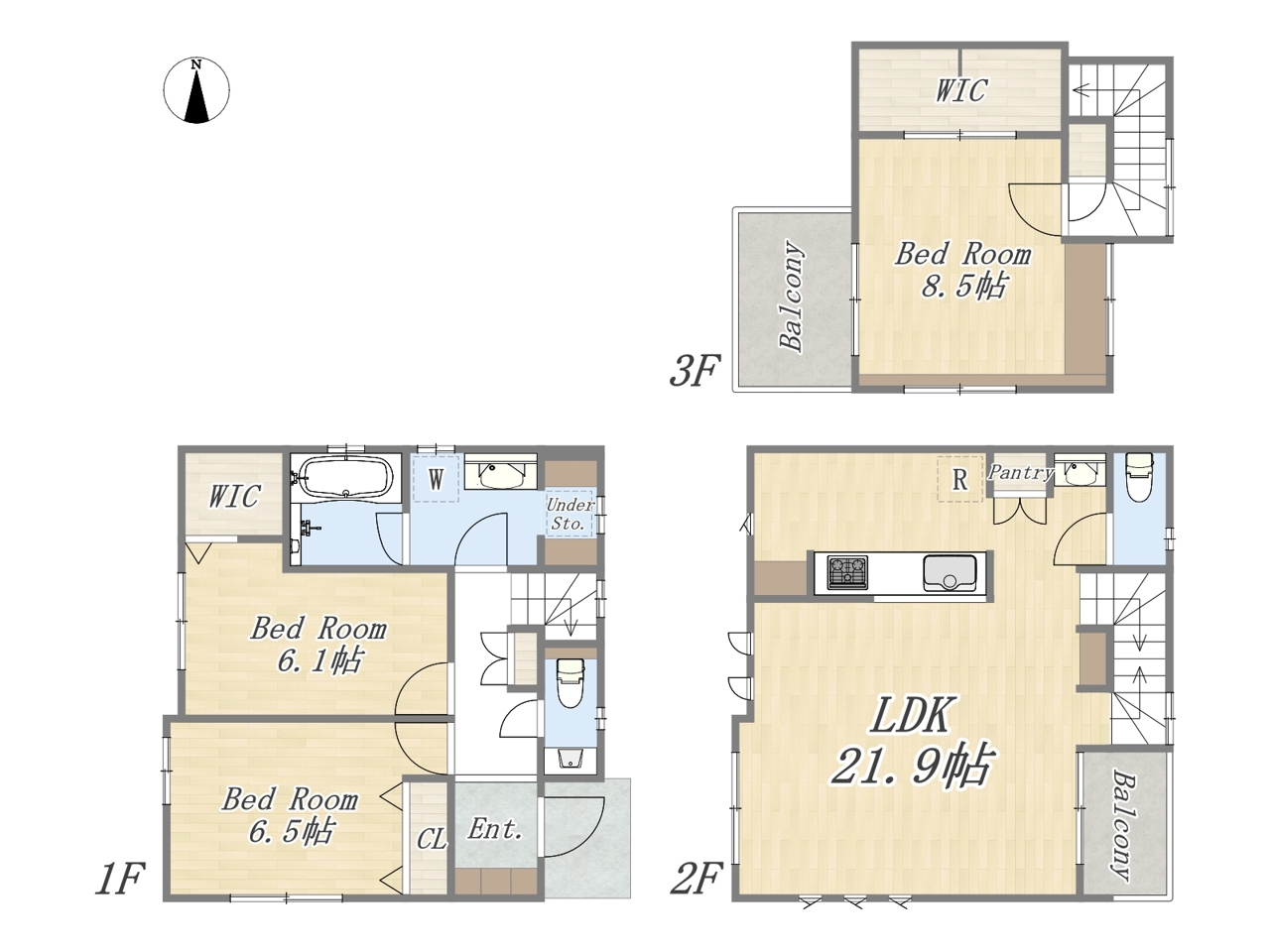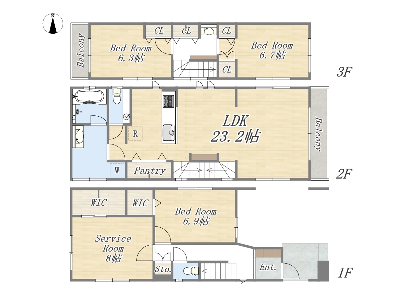 | 間取 | 3SLDK+2WIC+Pantry+カースペース | ||