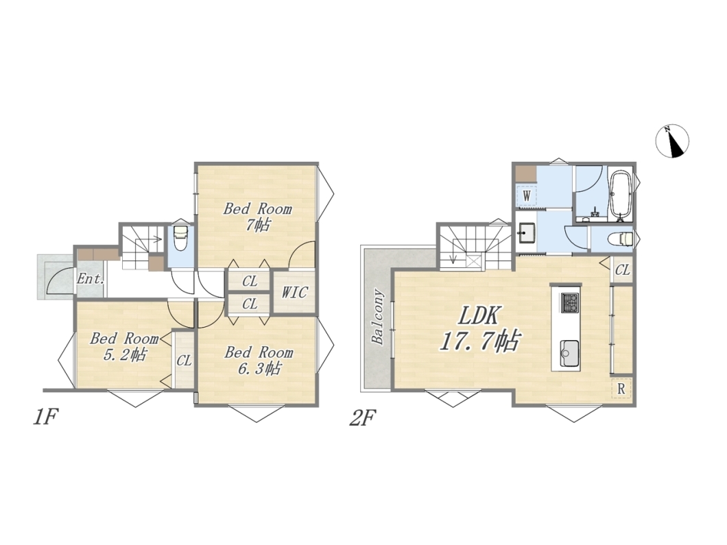| 間取 | 3LDK+WIC+Pantry+カースペース (LDK17.7帖、洋室7帖、洋室6.3帖、洋室5.2帖) |