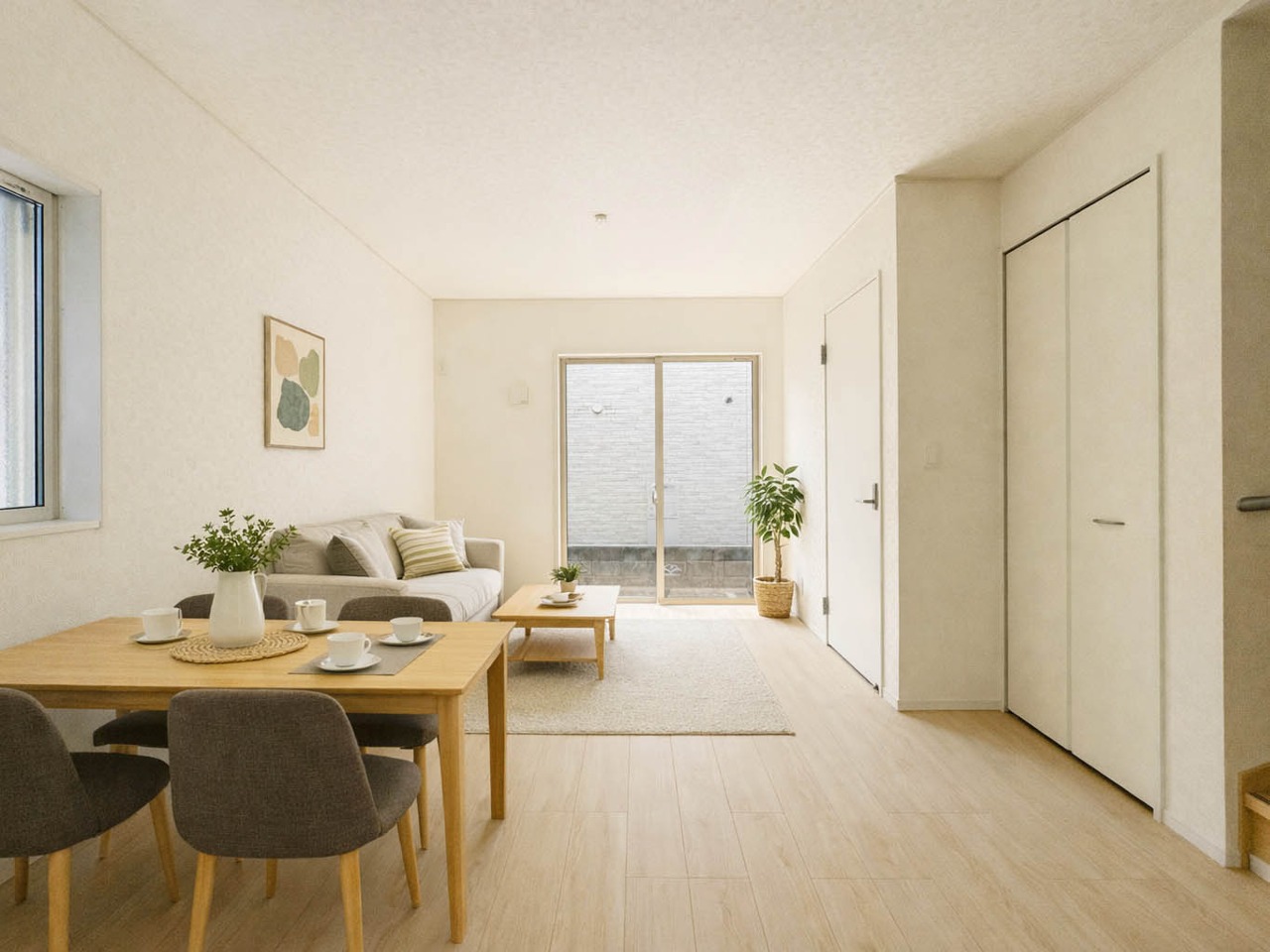 【LDK:12.62帖】 穏やかな時間が流れる、心地よい空間。 本画像はCGで作成しており、実際に現地に家具は配置しておりません。また、価格に家具は含まれません。