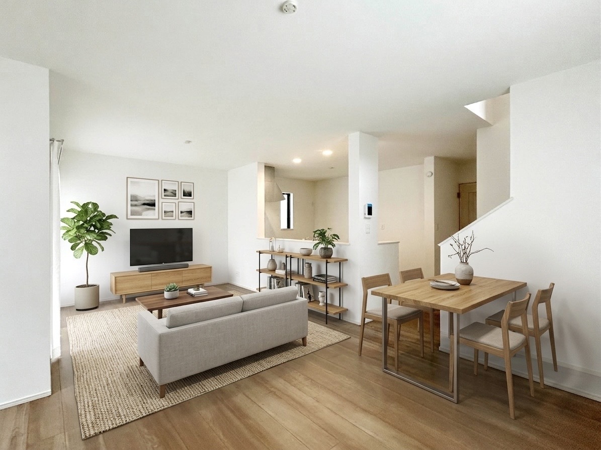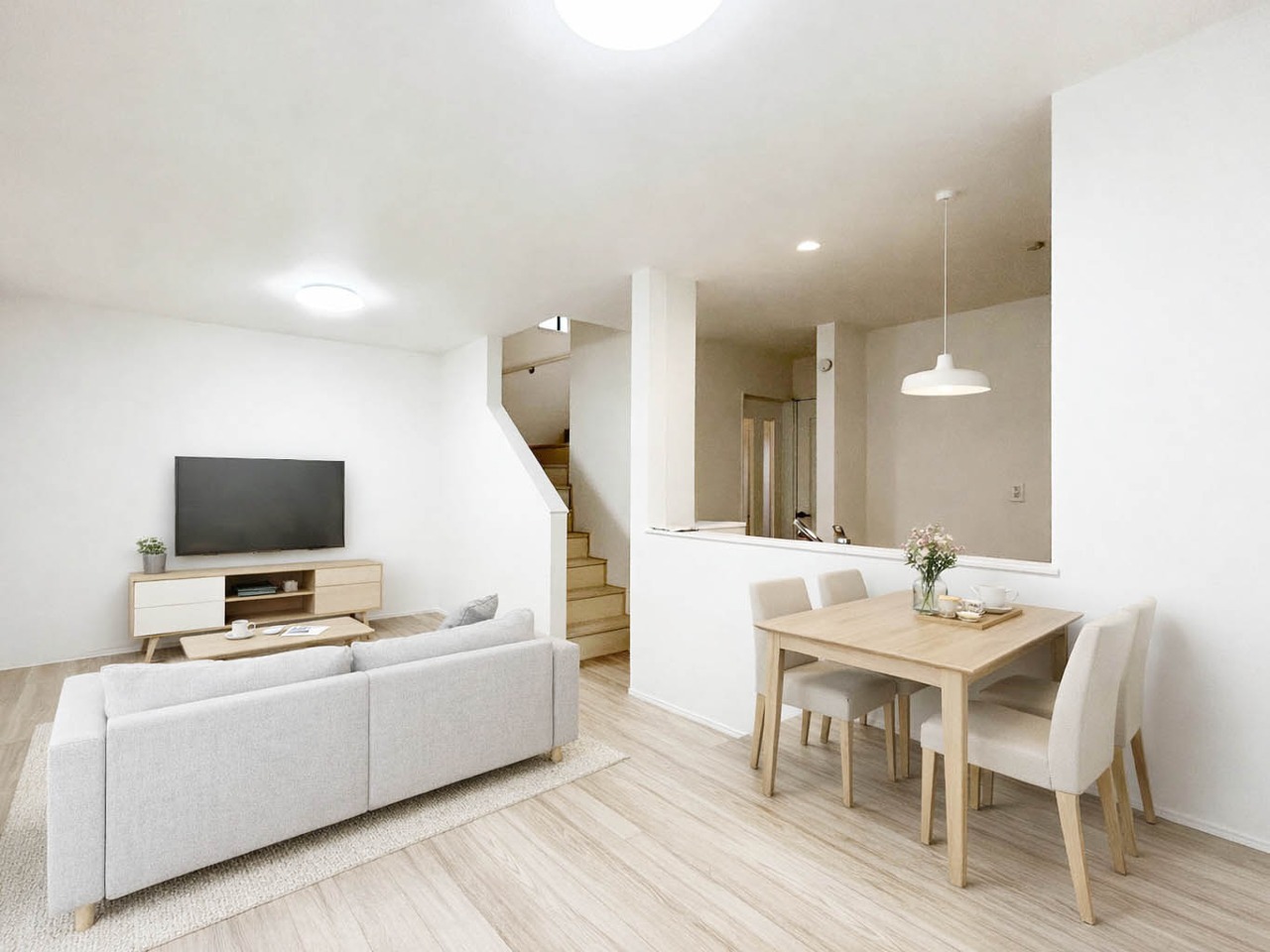 【LDK:B号棟】 本画像はCGで作成しており、実際に現地に家具は配置しておりません。また、価格に家具は含まれません。