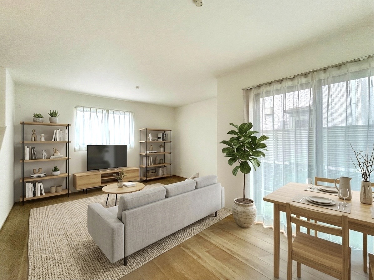 【LDK:C号棟】 本画像はCGで作成しており、実際に現地に家具は配置しておりません。また、価格に家具は含まれません。