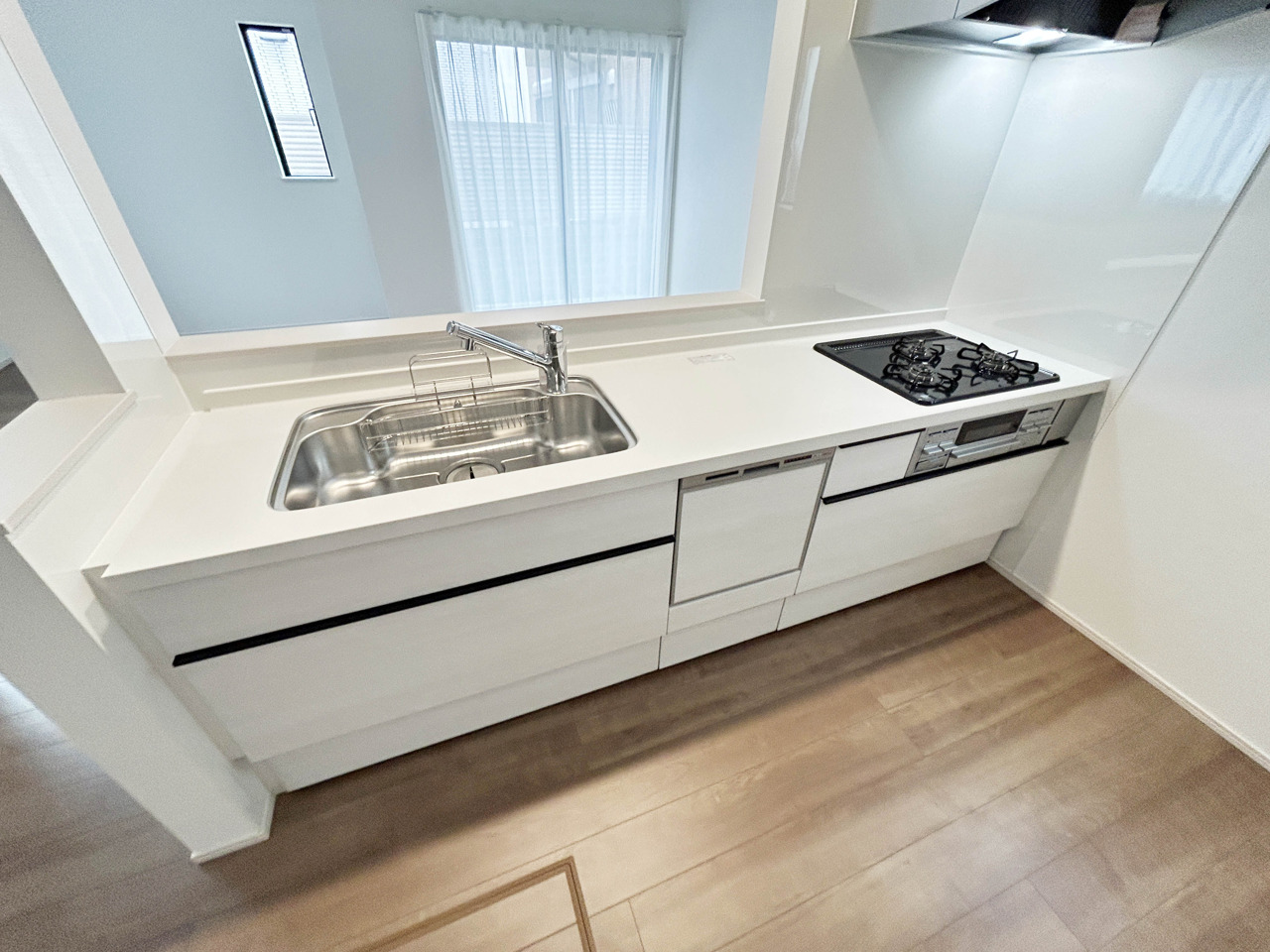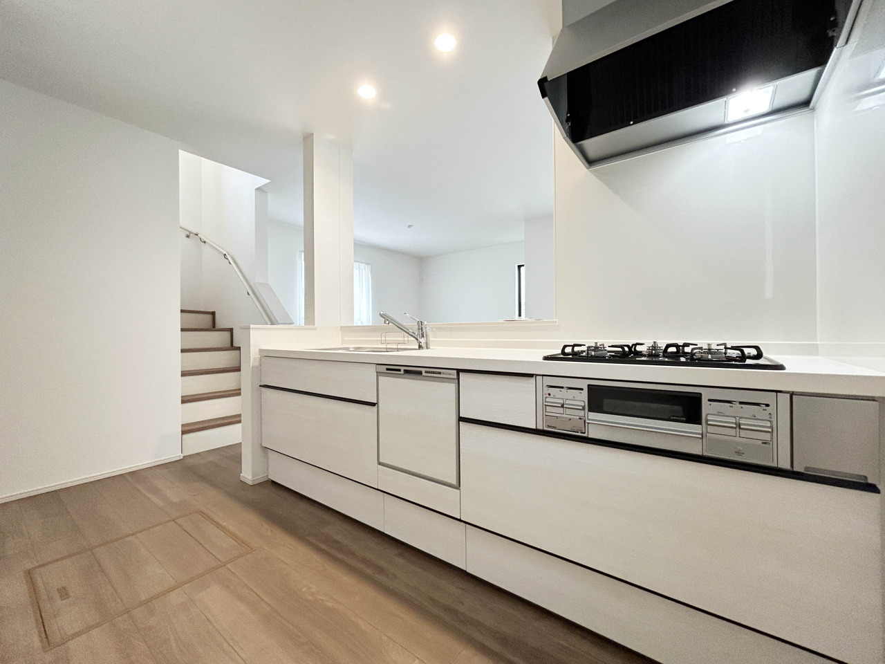 C号棟 【Kitchen】 清潔感あふれる白で統一された空間は、日々の暮らしに心地よいリズムをもたらします。機能美を追求したキッチンからは、穏やかな時間が流れ、穏やかなひとときが心を満たしていきます。