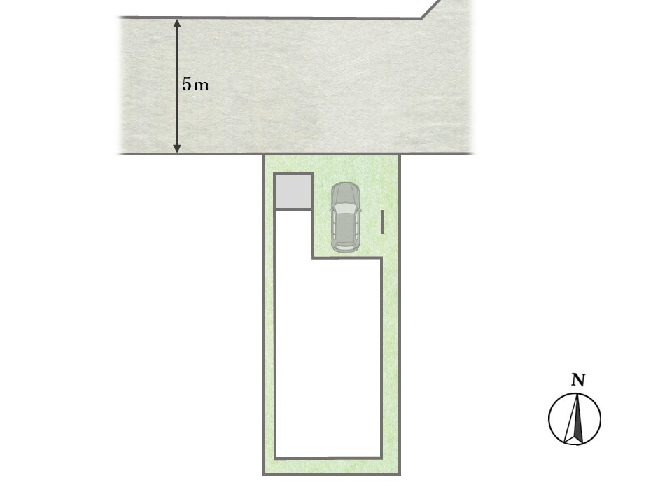 POINT3. ビルトインガレージ付きの整形地物件!前面道路も幅員約5mあり、駐車もスムーズ!