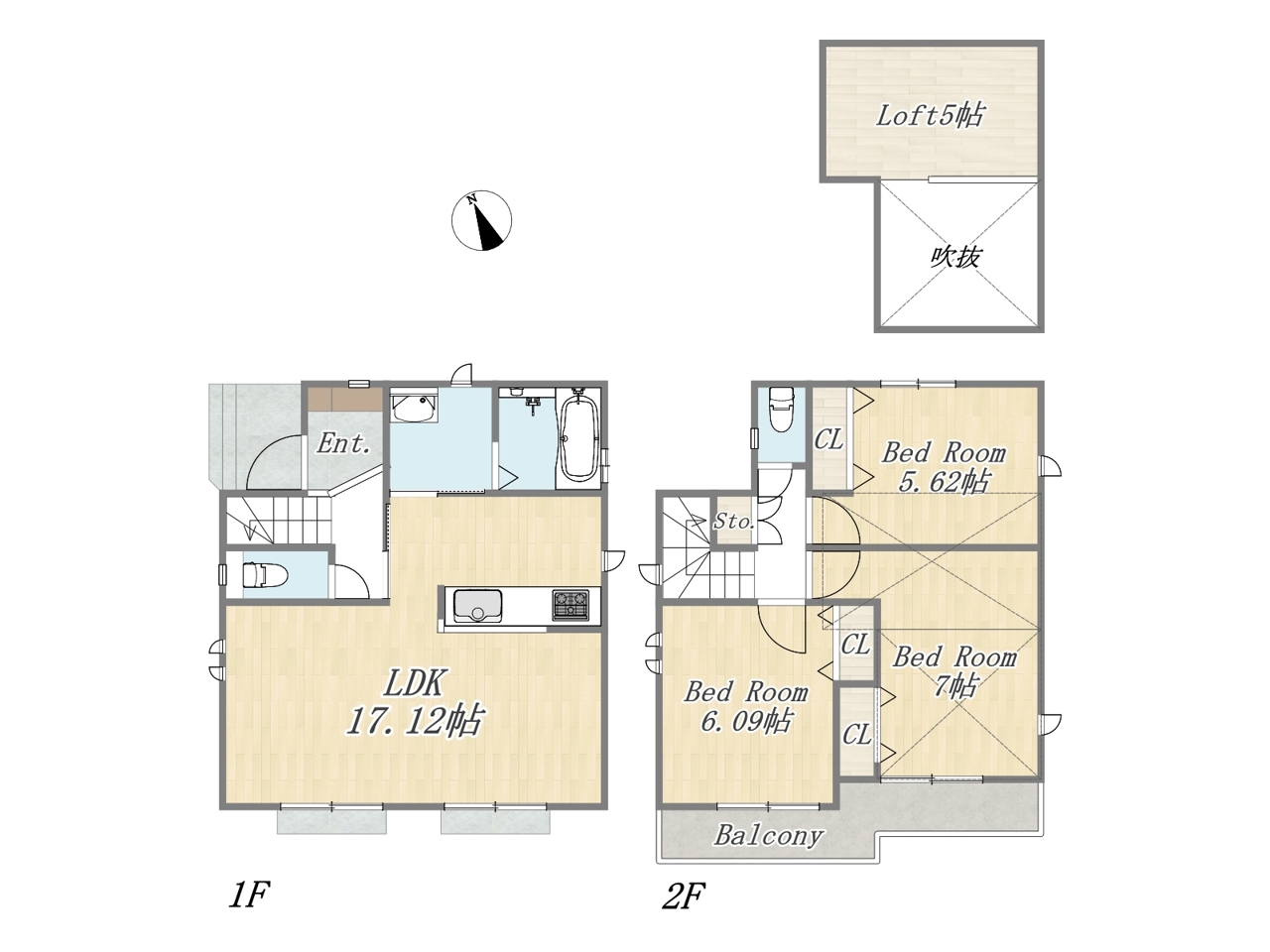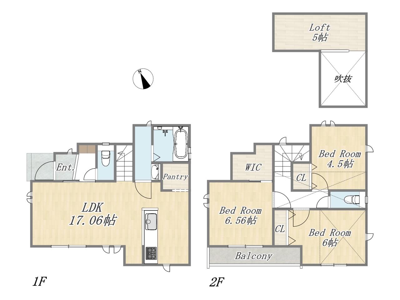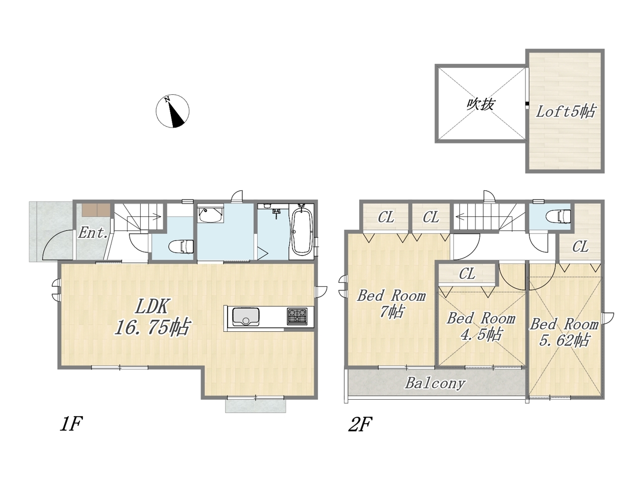 POINT2. LDK16帖超×3部屋プラン!全棟ロフト収納付きで収納も豊富!