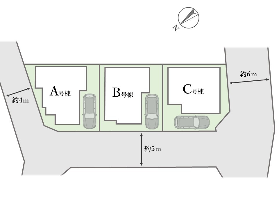 | 接道 | 北東側4M道路に接道 北西側5M道路に接道 南西側6M道路に接道 |