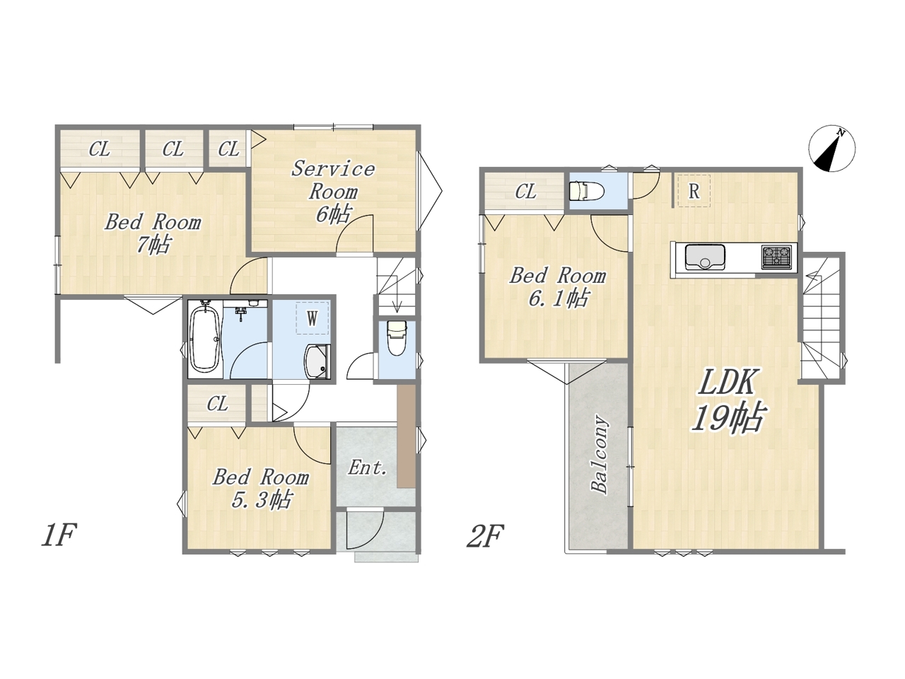 | 間取 | 3SLDK+カースペース (LDK19帖、洋室7帖、洋室6.1帖、洋室5.3帖、S6帖) | ||