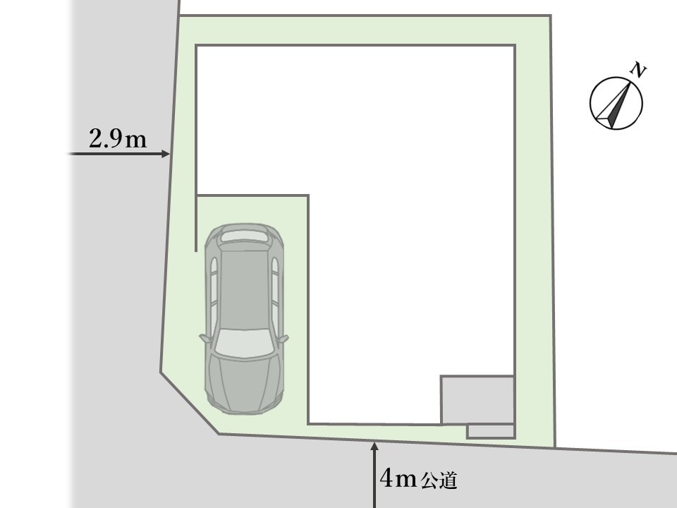 | 権利種類 | 所有権 | 接道 | 南東側4M公道に8M接道 南西側2.9M道路に8.4M接道 |