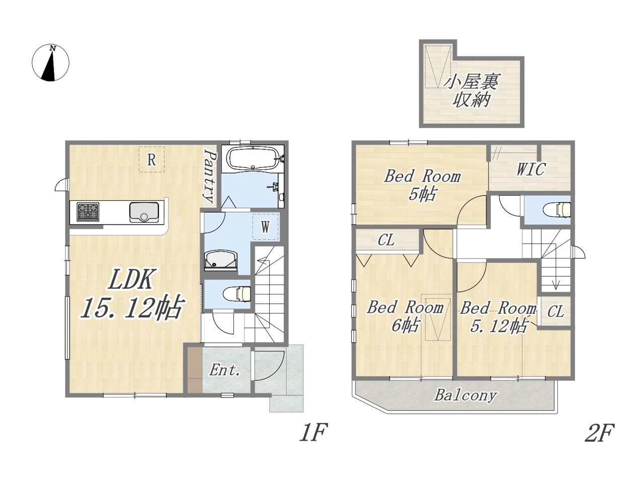 | 間取 | 3LDK+WIC+Pantry+小屋裏収納+カースペース (LDK15.12帖、洋室6帖、洋室5.12帖、洋室5帖) | ||