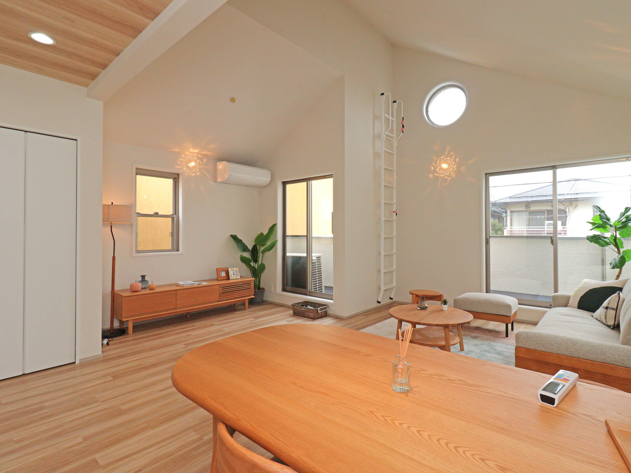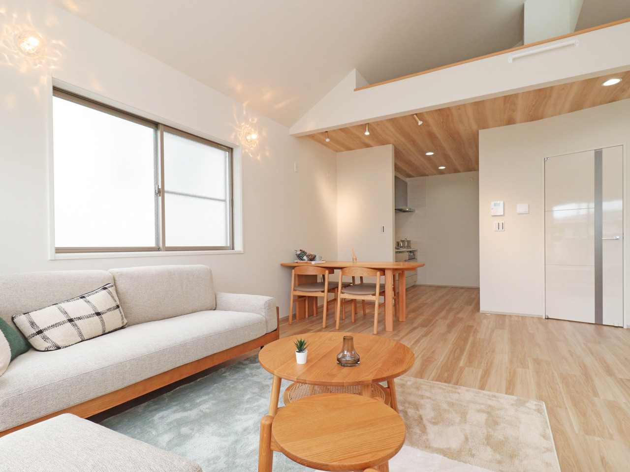 POINT1. LDK18.5帖の4LDKプラン!ロフト収納付きで吹き抜けており、開放的なリビングルーム!