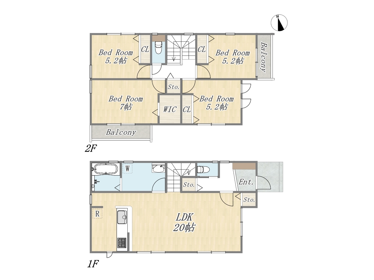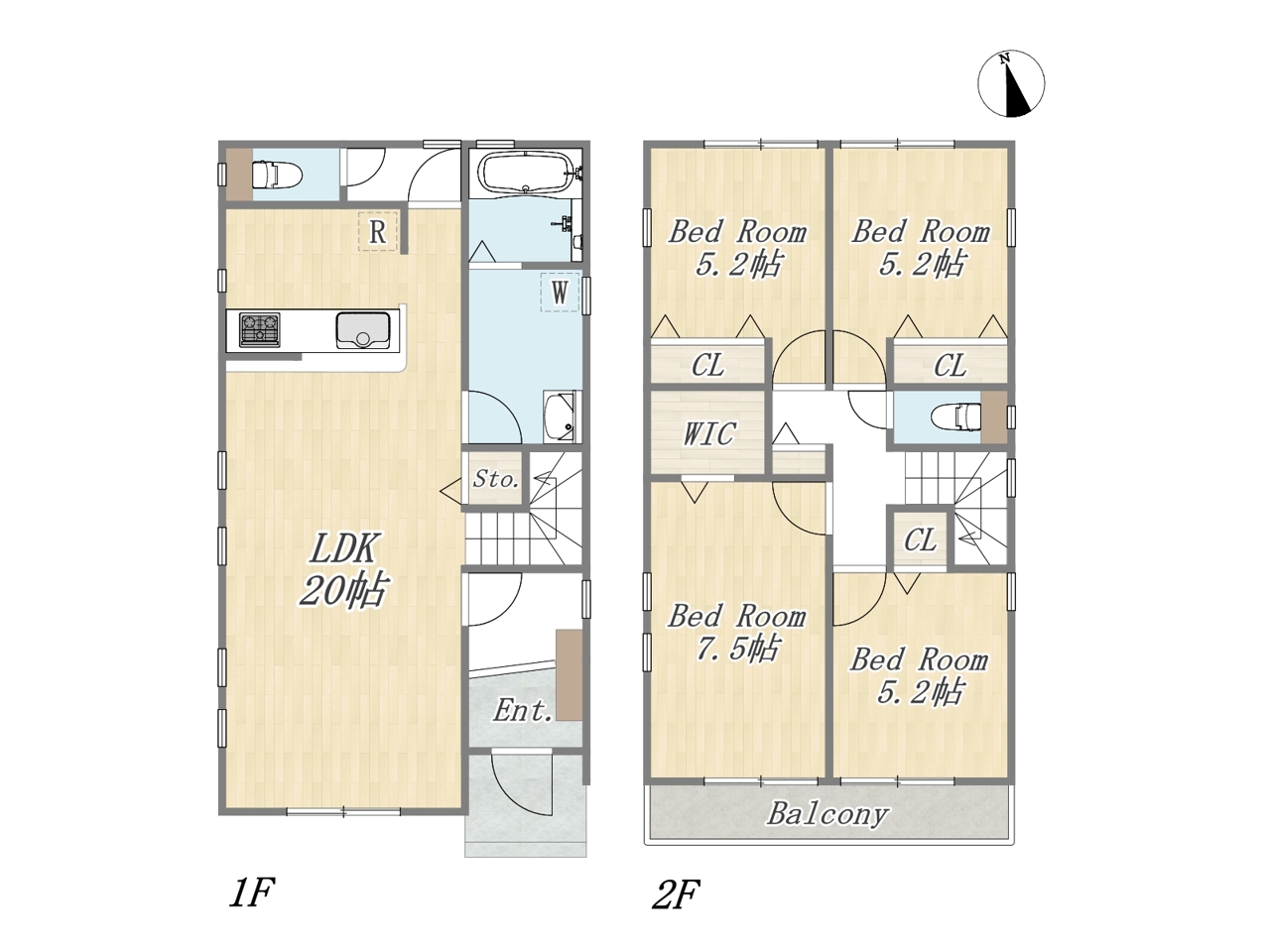 2号棟 【間取り図】 4LDK+WIC+カースペース2台
