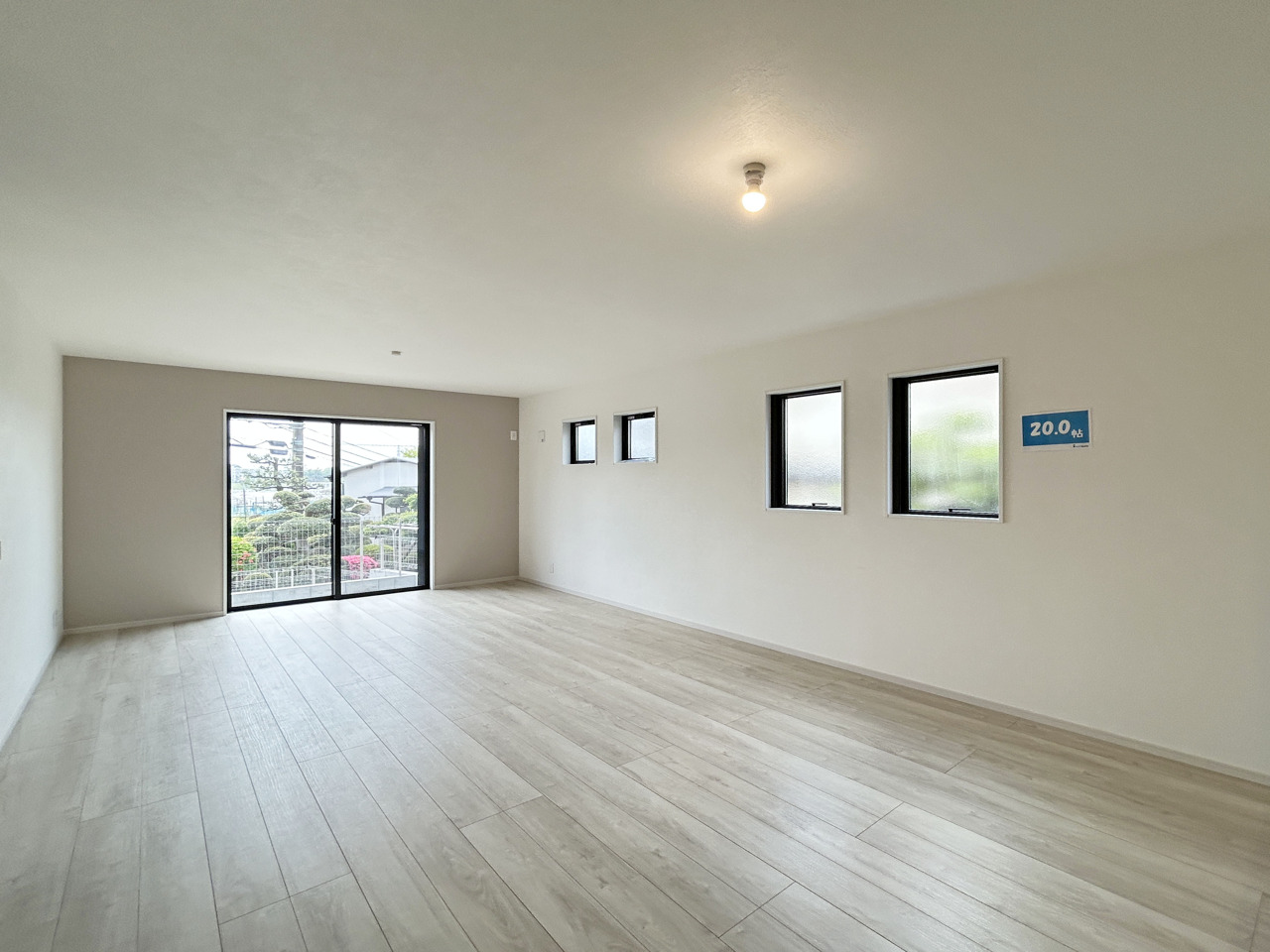 POINT1. LDK20帖の4LDKファミリープラン!前面道路の幅員9m超で陽当たり・通風良好な立地!